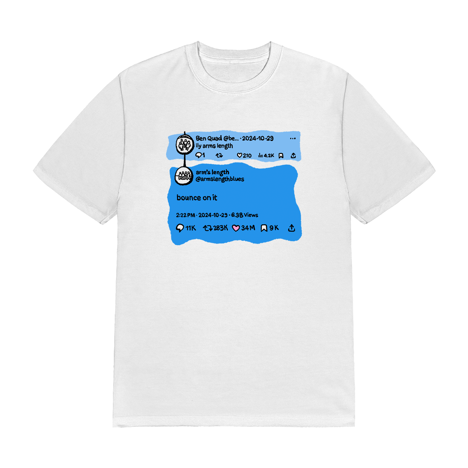 Official Arm's Length Merchandise. White 100% Cotton T-Shirt with a relaxed fit.